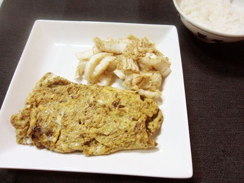 一人ごはん献立「海苔の佃煮入り玉子焼きと白菜の胡麻和え」