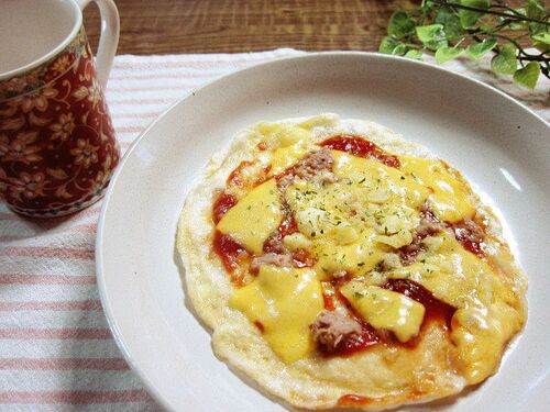 お菓子作りで余った卵白をピザの生地に見立ててみました。