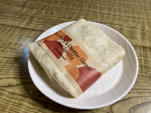 スターバックスの「スパイシーポーク&チェダーチーズ ホットトルティーヤ」を食べてみました。