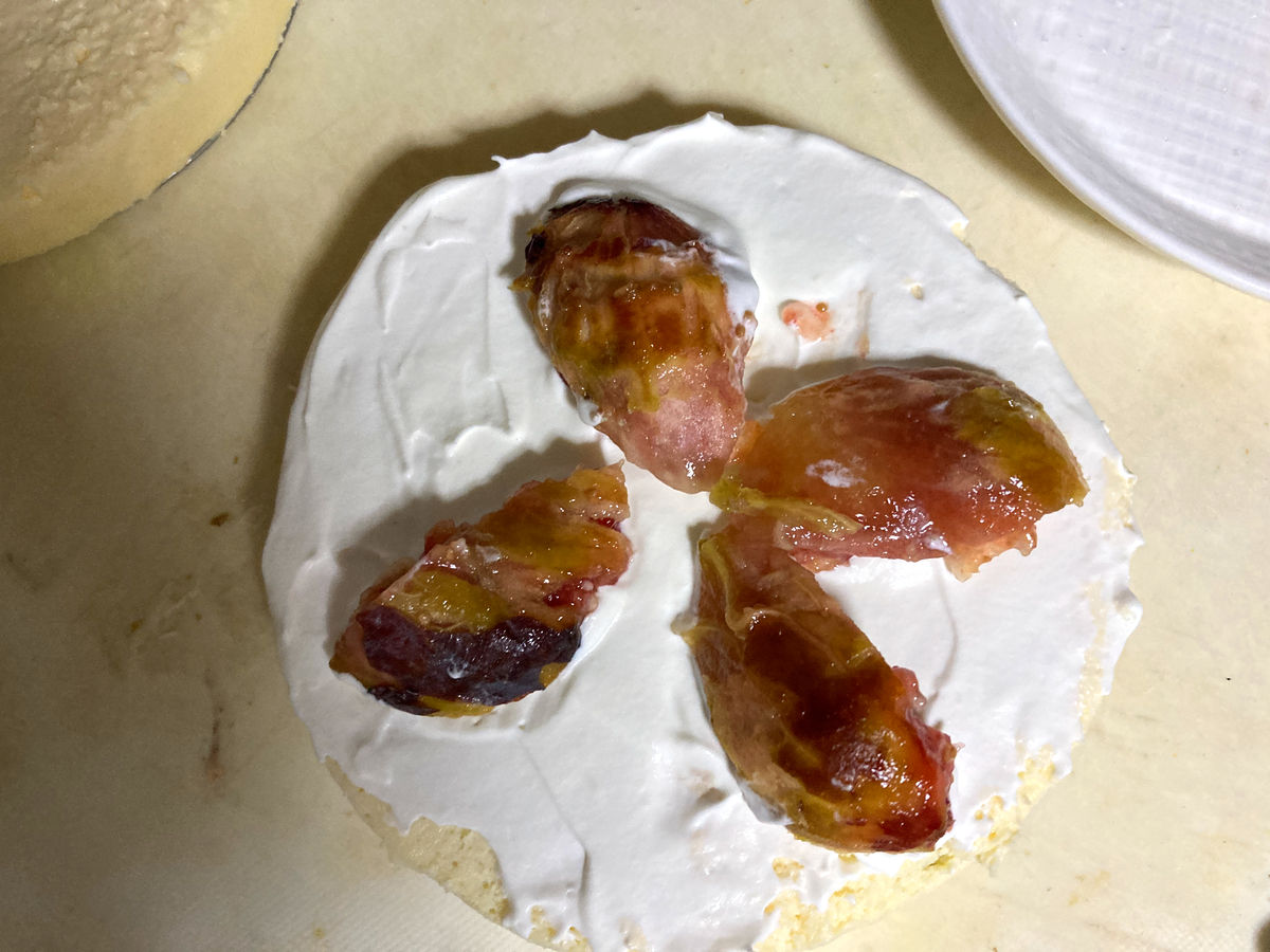 バターの上にもクリームを塗りますが、クリームが緩かった……。こぼれてきそうで怖い。