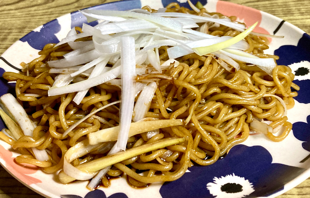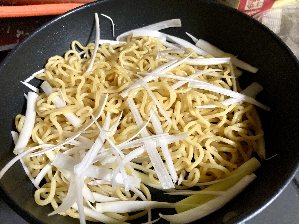 公式ではねぎと炒めるのがおすすめだったので、ねぎ焼きそばを作ってみました。