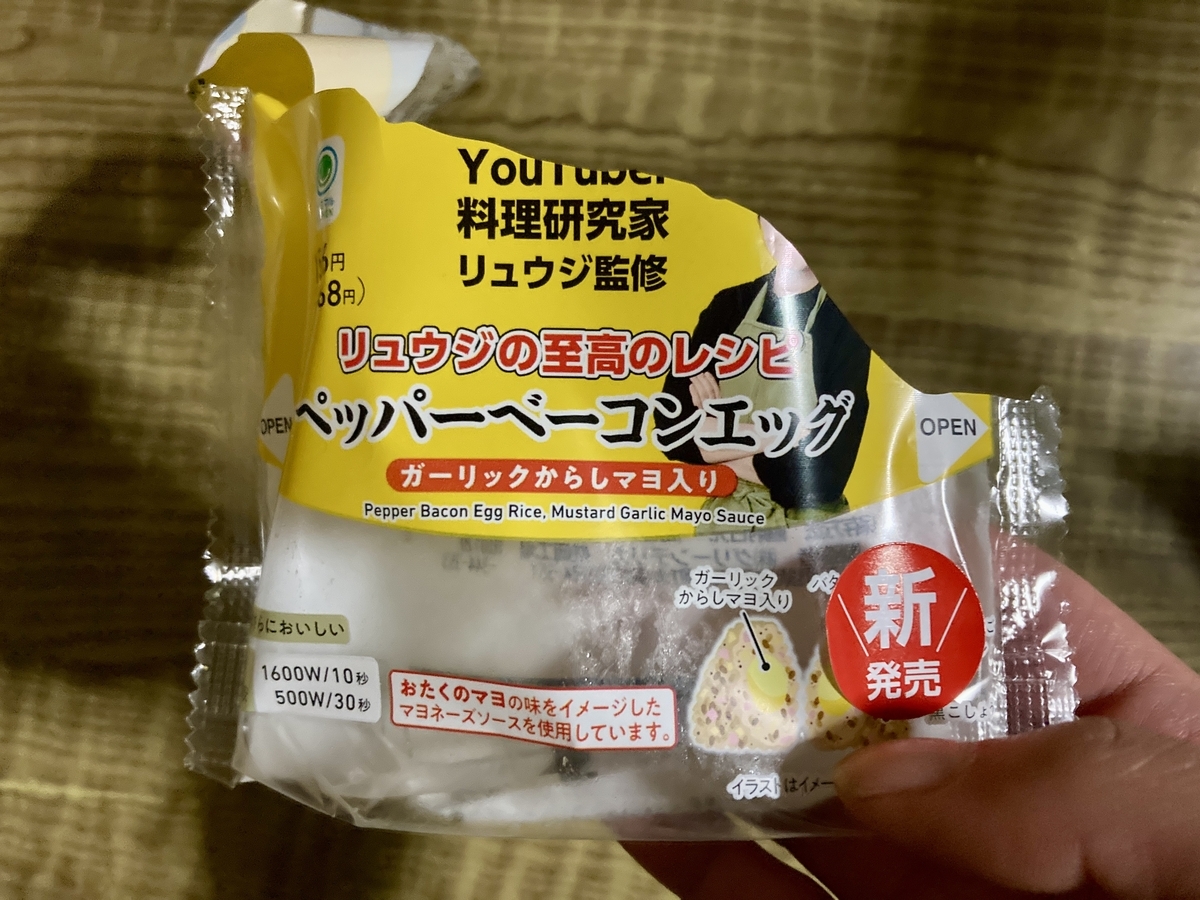 リュウジの至高のレシピ ペッパーベーコンエッグおむすび(168円)