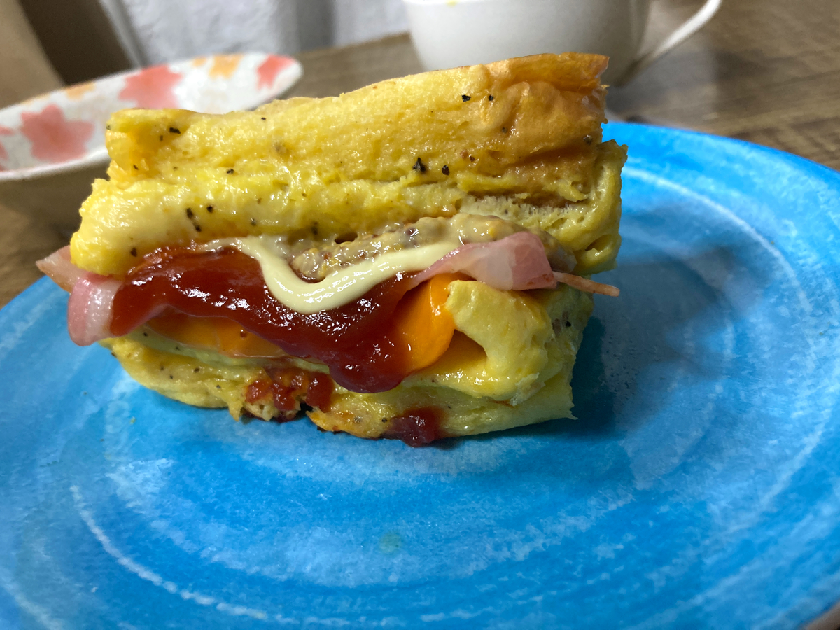 卵を2個使っているので、ベーコンとチーズを元のレシピより減らしてもブログ主のお腹に結構たまりました。
