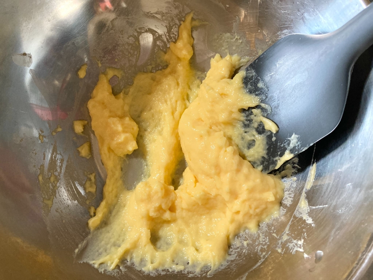 腰が切れるまで!サラッとするまで!急にフニャッとカスタードが柔らかくなるまで!結構微妙な変化だから、とっても分かりづらい。