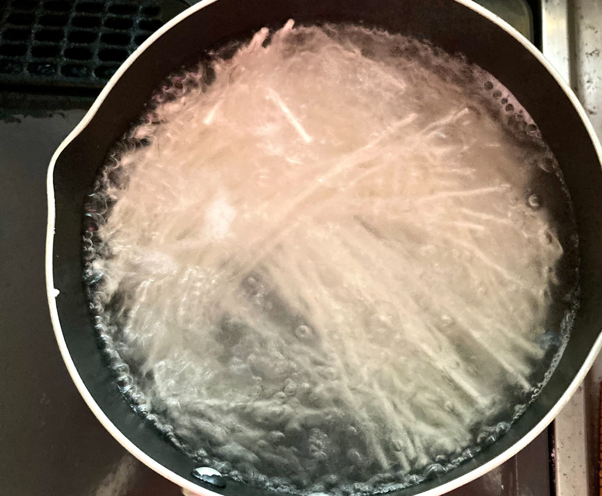 うどんは今回使うのは1人前当たり50gです。普通だと100gなのですが、それだと糖質が多すぎるので減らしています。