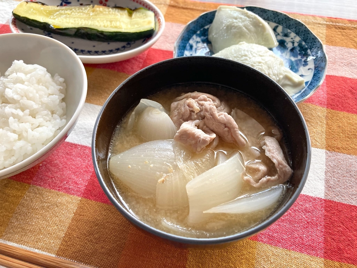 豚汁は玉ねぎの甘さが引き立っていて、とてもおいしかったです。具材2つだけでできるので、作るのも楽です。