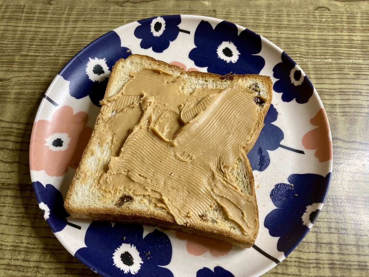 ピーナツバターを塗ったくります。カロリーが高いですが、たっぷり塗るのがおいしいです。