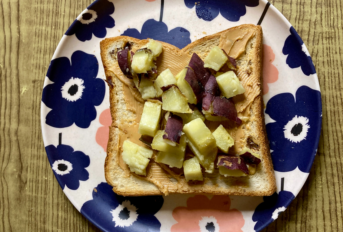 今回はピーナツバターを使った焼き芋トーストを作りました。