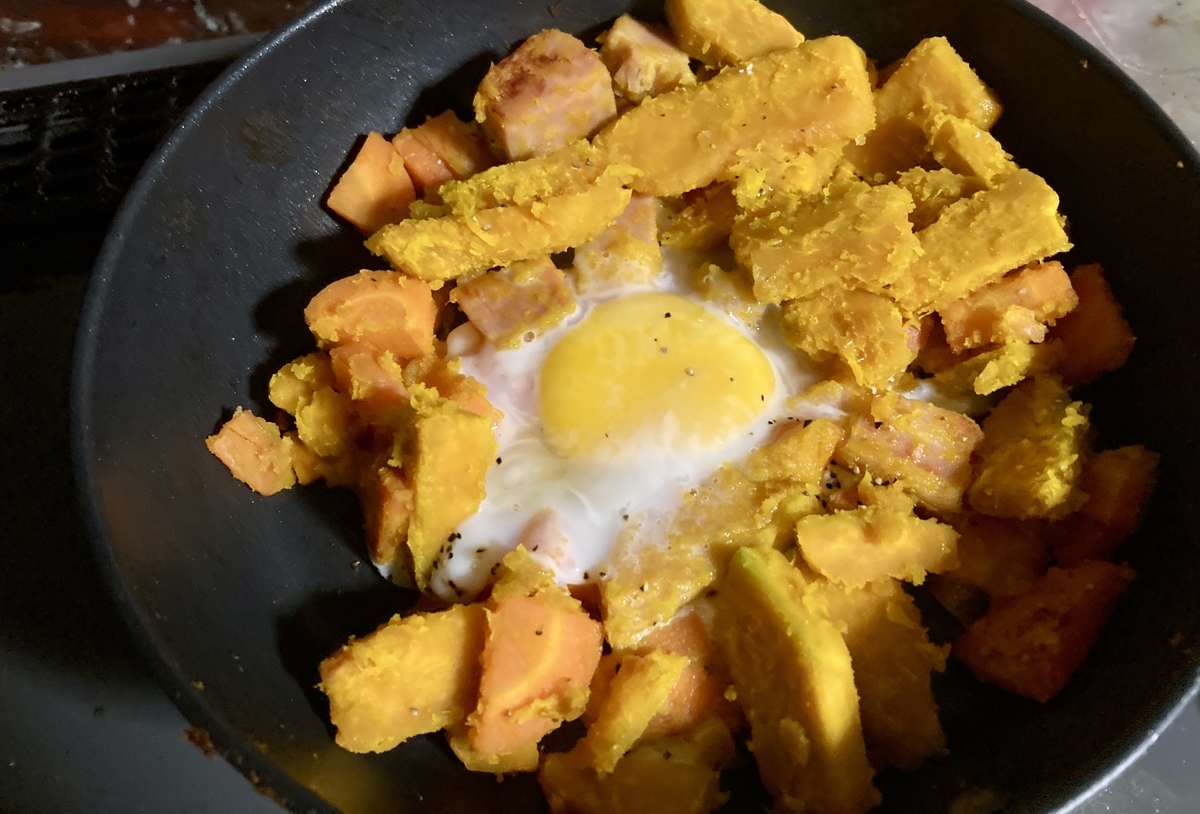 今回は野菜をじっくり炒めた上に卵を落とした目玉焼きを作りました。簡単においしく作れるのでおすすめの料理です。