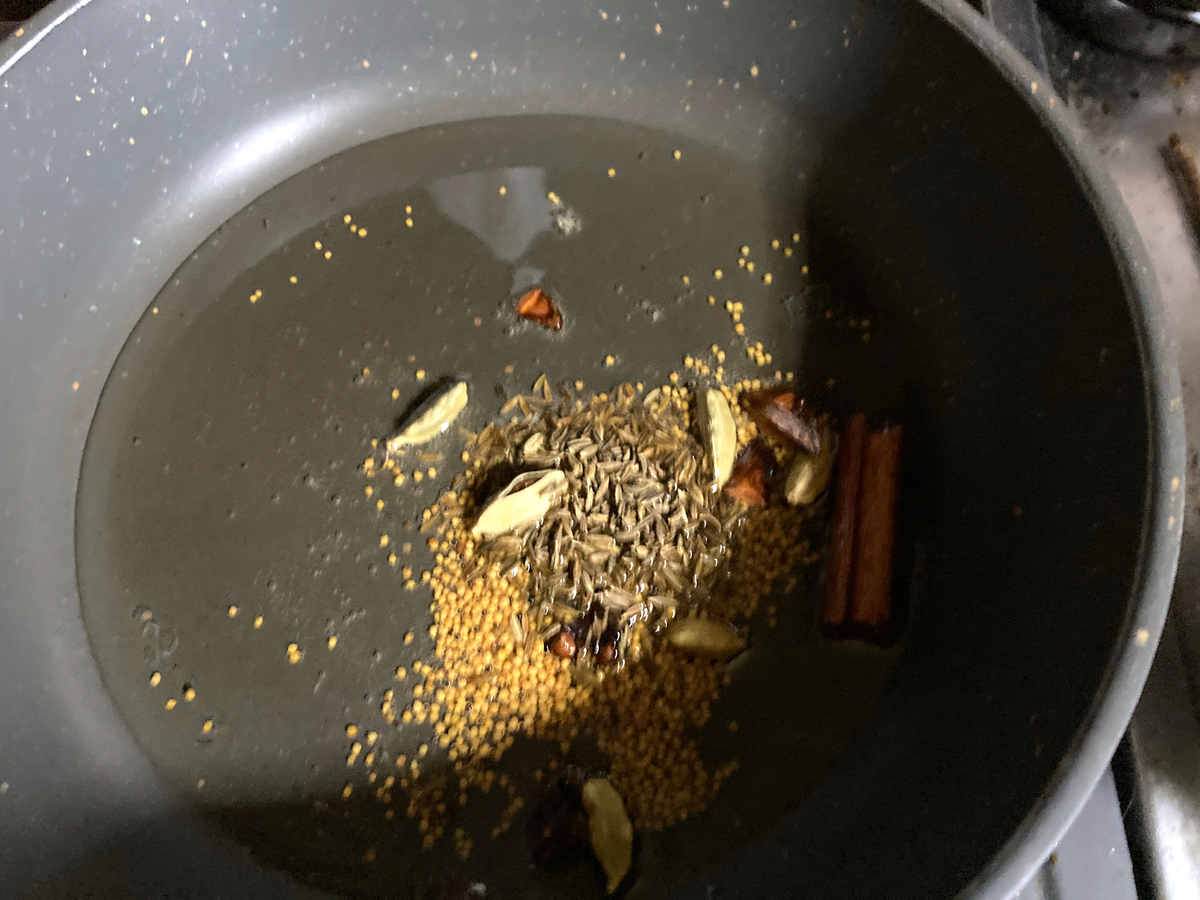 正直、個人的にマスタードシードが弾けそうなタイミングがわからなかったので、少し早めに入れたと思います。