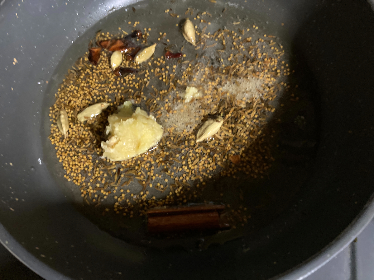マスタードシードが弾けそうになったら、クミンシードを入れます。