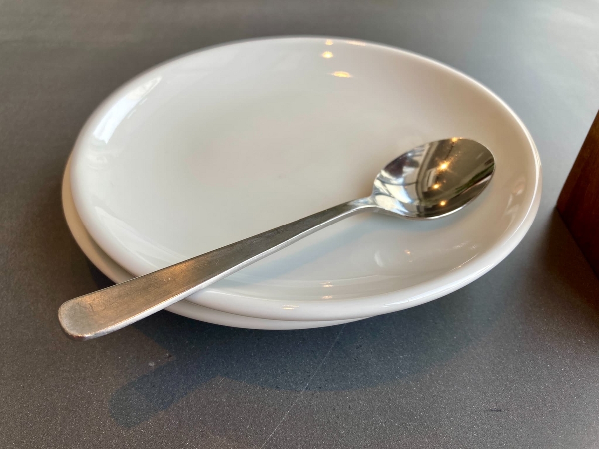 おしゃれな店内の雰囲気にはよく合う水差しですが……盛れないやつのほうがいいんじゃないかな……。